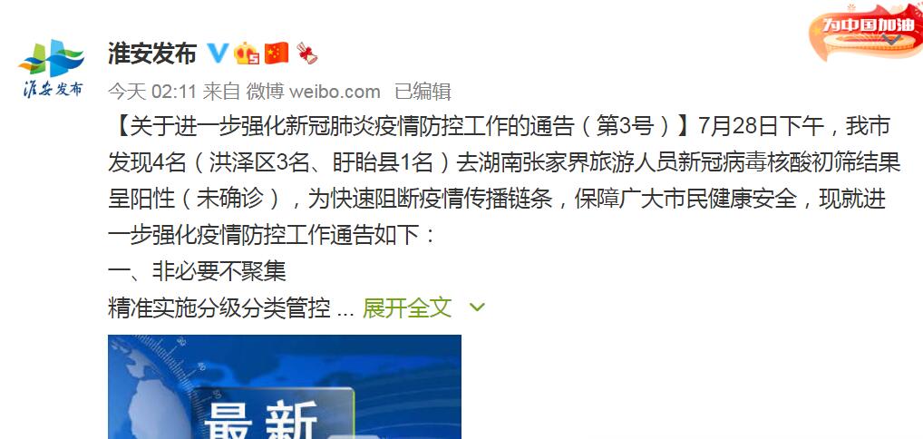 來源:“淮安發(fā)布”微博非必要不聚集精準實施分級分類管控措施,...